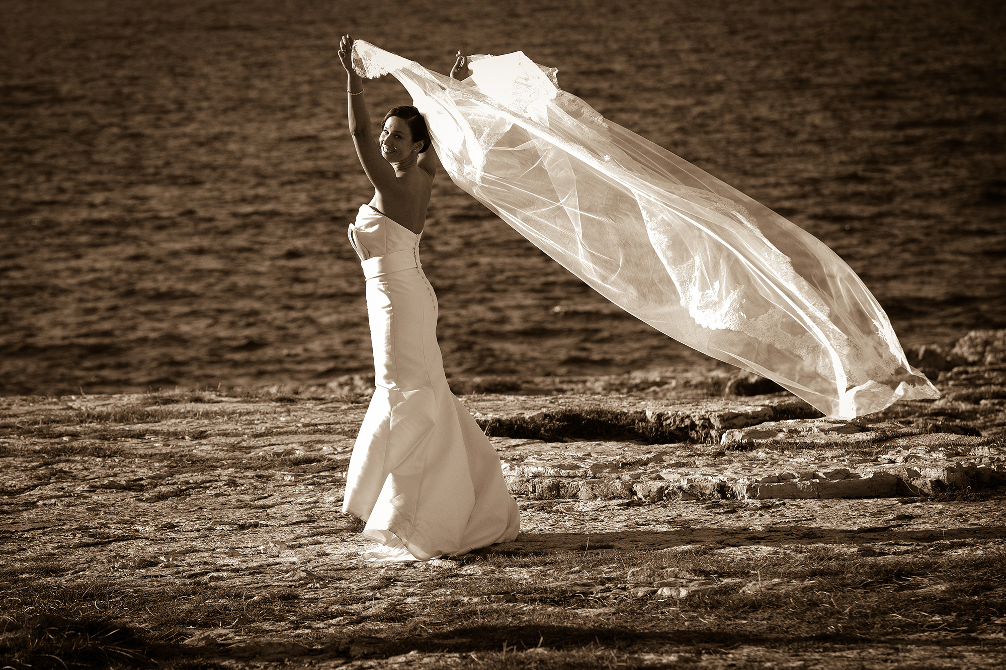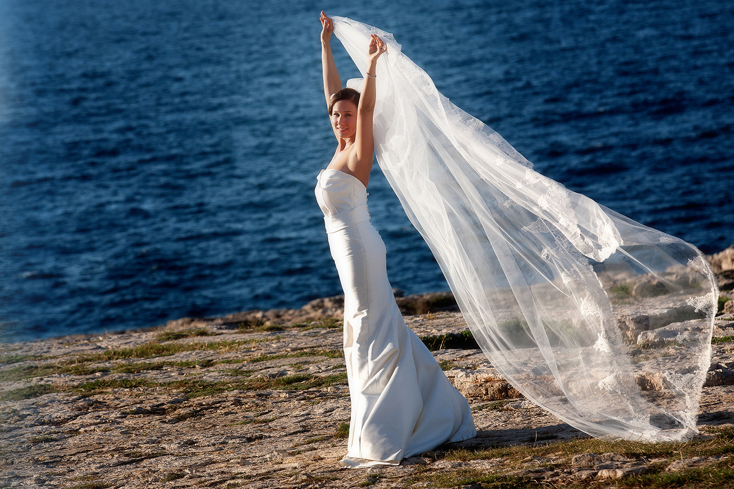 32 Matrimonio sposa con velo sul mare di Polignano Puglia Italy